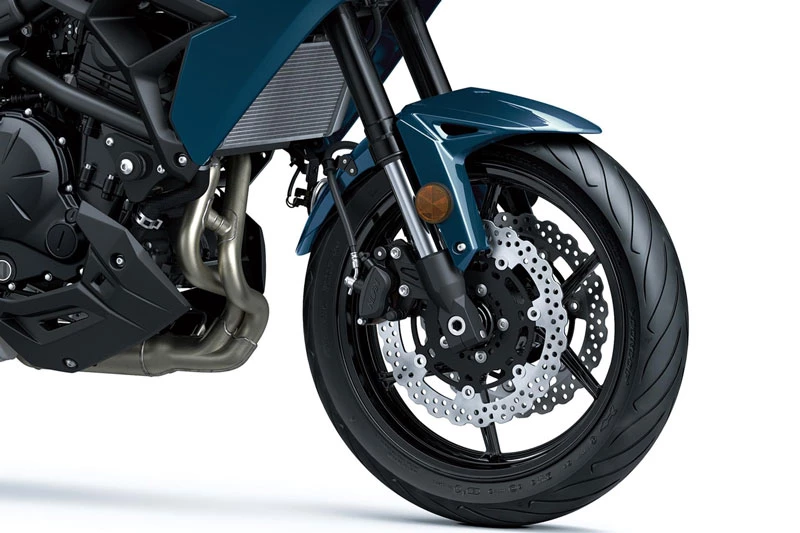Về khung gầm và hệ thống treo, Versys 650 2026 được trang bị phuộc trước dạng upside-down có khả năng điều chỉnh, kết hợp với giảm xóc đơn phía sau, mang lại sự ổn định và êm ái khi di chuyển trên nhiều điều kiện đường sá khác nhau. Hệ thống phanh gồm hai đĩa phanh đường kính 300 mm ở bánh trước và một đĩa 250 mm ở bánh sau, đảm bảo khả năng hãm tốc an toàn và hiệu quả cho một mẫu xe touring cỡ trung.
