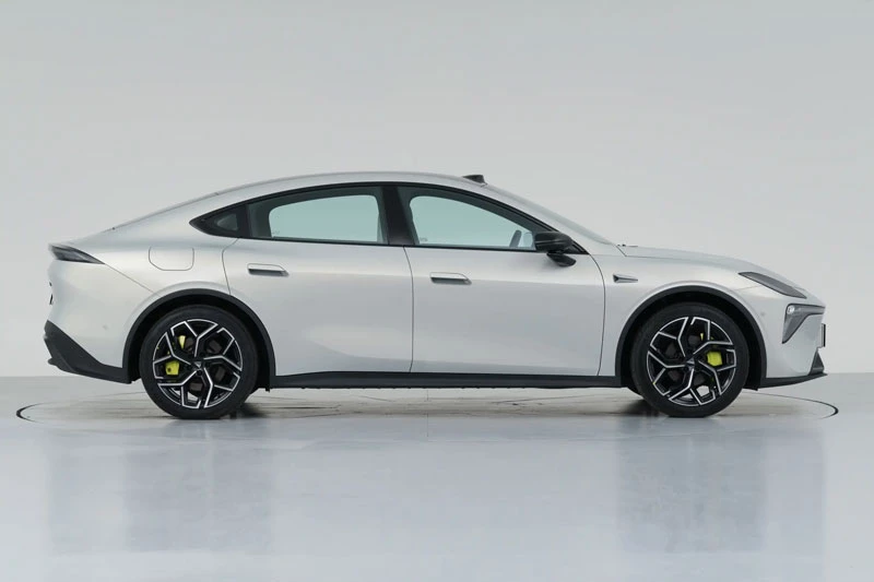 Nhìn từ bên hông, xe có đường mui dốc nhẹ mang phong cách coupe, các vòm bánh trước - sau được mở rộng tạo hiệu ứng thị giác khỏe khoắn. Gương chiếu hậu ngoài thiết kế siêu mảnh không khung, tay nắm cửa dạng bán ẩn và thân xe liền mạch giúp giảm hệ số cản gió chỉ còn 0,23 Cd.