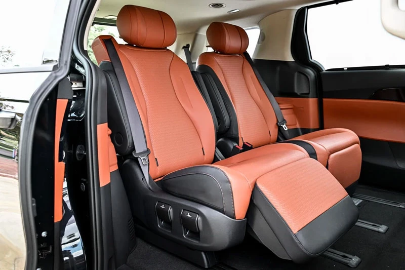 Ở phiên bản Premium, hàng ghế thứ hai hạng thương gia có thể tháo rời hoặc xoay đối diện, gia tăng sự linh hoạt. Ghế hàng ba có thể gập phẳng, giúp mở rộng không gian chứa đồ. Cabin cũng được trang bị móc khóa ISOFIX cho 4 vị trí ghế, bảo đảm an toàn cho trẻ em.
