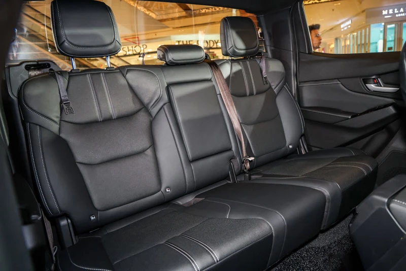 Về an toàn, xe được trang bị bảy túi khí cùng các công nghệ chủ động như ABS, EBD, ESC, hỗ trợ phanh khẩn cấp, hỗ trợ khởi hành ngang dốc, kiểm soát đổ đèo, và gói ADAS gồm đèn pha tự động, cảnh báo điểm mù, cảnh báo phương tiện cắt ngang phía sau, cảnh báo chệch làn, kiểm soát hành trình thích ứng, hỗ trợ chú ý người lái, cảnh báo va chạm phía trước và phanh tự động khẩn cấp.