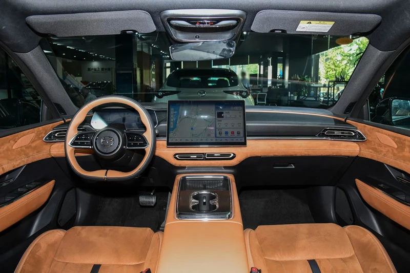 Khoang nội thất Mazda EZ-6 2026 là sự kết hợp giữa công nghệ hiện đại và phong cách tối giản. Xe được trang bị màn hình trung tâm nổi 14,6 inch, bảng đồng hồ kỹ thuật số LCD 10,1 inch cùng màn hình hiển thị thông tin AR-HUD 50 inch, mang đến trải nghiệm hiển thị trực quan và sống động.
