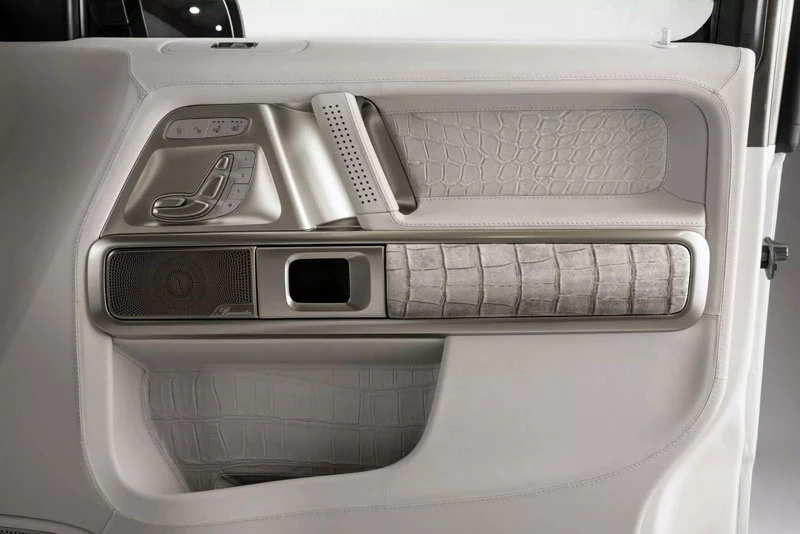 Bước vào khoang cabin, Carlex tiếp tục chứng minh lý do vì sao chiếc xe này có giá lên tới hàng triệu đô la. Toàn bộ ghế ngồi được bọc bằng da cá sấu Himalaya cao cấp - loại da nổi tiếng từng được sử dụng trên túi xách Hermès Birkin với giá hàng trăm nghìn USD mỗi chiếc. Sự xa xỉ này tiếp tục hiện diện ở từng chi tiết nội thất, từ da nâu và trắng cao cấp phối hợp tinh tế, cho đến trần xe bọc Alcantara mềm mại, mang lại cảm giác vừa sang trọng vừa độc nhất vô nhị.
