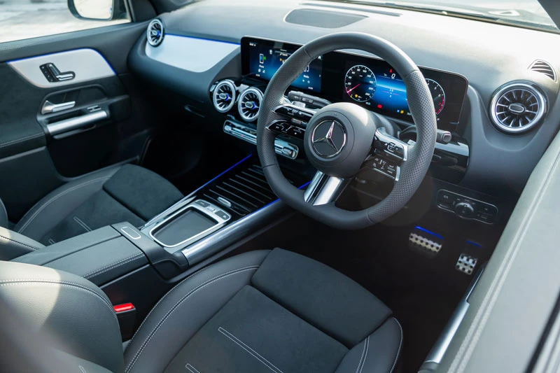 Không gian nội thất cũng được nâng cấp đáng kể khi GLA200 nay sở hữu các trang bị vốn chỉ có trên GLA250 trước đây như ghế thể thao bọc da Artico kết hợp vải sợi nhỏ, vô-lăng AMG bọc da Nappa, ốp nhôm phay xước, bàn đạp hợp kim và trần xe màu đen. Cả hai phiên bản đều được bổ sung điều hòa tự động hai vùng Thermotronic có cửa gió hàng ghế sau cùng camera 360 độ, khắc phục những hạn chế trước đó.