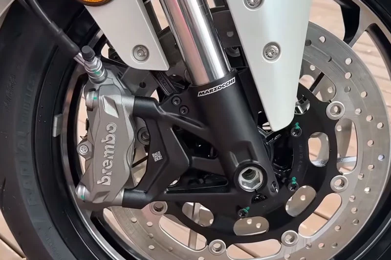 Ngoài ra, QJMotor Racing 550ES 2026 còn được trang bị hàng loạt linh kiện cao cấp như phuộc Marzocchi, phanh Brembo, bơm phanh trực tiếp, lốp thể thao hiệu suất cao CST và gắp sau kiểu “gull arm” cho khả năng vận hành ổn định, chính xác và bám đường tốt hơn ở tốc độ cao.