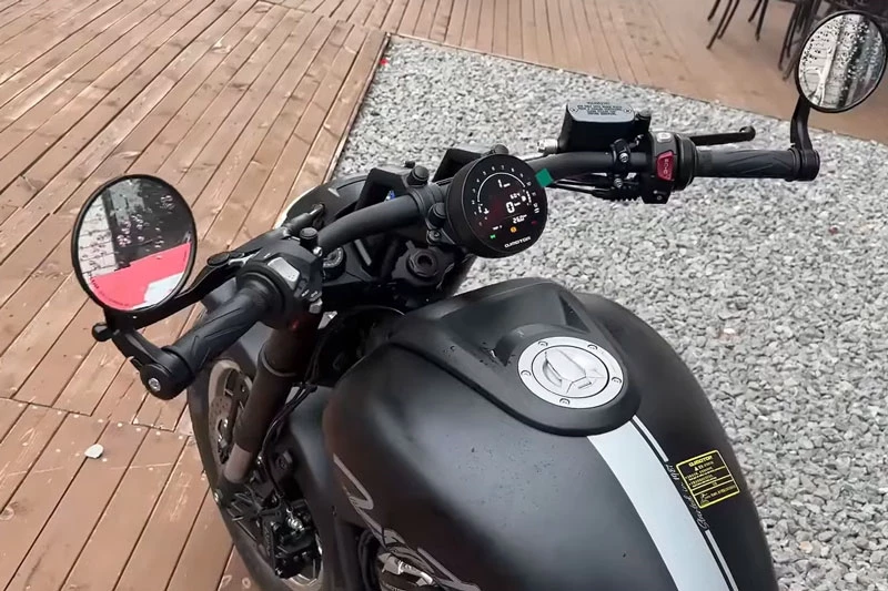 Phần đuôi xe là điểm nhấn độc đáo với nắp chụp hình tên lửa, mang đậm tinh thần thể thao cổ điển. Âm thanh phát ra từ ống xả được tinh chỉnh sâu, ấm và giàu cảm xúc - gợi nhớ tiếng gầm đặc trưng của những mẫu mô tô huyền thoại thập niên 70-80.
