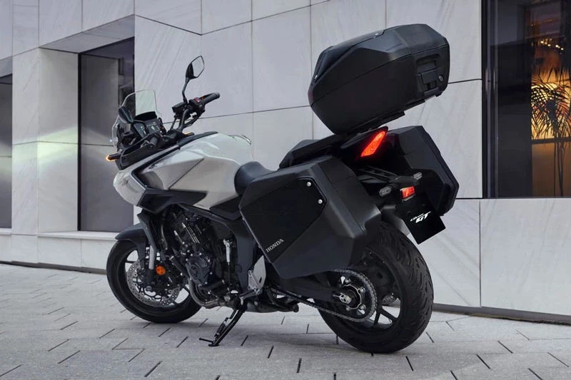 Về khí động học, Honda áp dụng thiết kế CFD cho dàn áo nhằm tối ưu luồng gió trong mọi điều kiện nghiêng xe. Kính chắn gió chỉnh điện 5 cấp với hành trình tăng 3,2 inch giúp giảm áp lực gió lên người lái. Phục vụ đúng chất touring, CB1000GT trang bị hai thùng hông tiêu chuẩn với tổng dung tích 65,12 lít, có thể lắp thêm thùng sau 51 lít để tăng khả năng chở đồ. Tư thế ngồi được cải thiện với yên cao 826 mm, lớp mút dày hơn và gác chân kiểu CB1000F đặt thấp hơn so với Hornet mang lại sự thoải mái cho những chuyến đi dài.