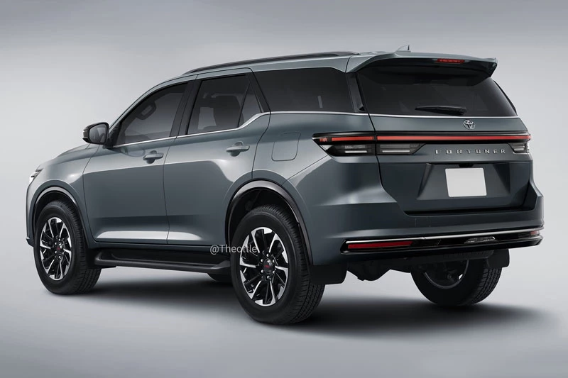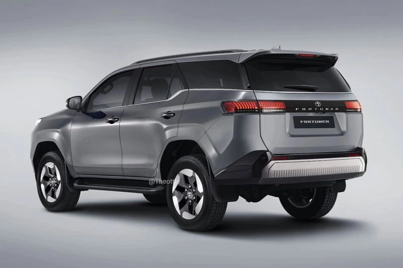 Ở phía sau, đuôi xe Toyota Fortuner thế hệ mới có thể được làm mới với cụm đèn hậu LED nối liền bằng một dải sáng kéo dài toàn bộ chiều rộng cửa cốp - xu hướng thiết kế đang phổ biến trên nhiều mẫu xe hiện đại. Dòng chữ FORTUNER nhiều khả năng được đặt nổi bật ở trung tâm đuôi xe nhằm tăng khả năng nhận diện thương hiệu.