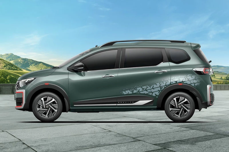So với “người anh em” Triber, Nissan Gravite được tinh chỉnh nhẹ về ngoại hình nhằm tạo bản sắc riêng đậm chất Nissan. Điểm khác biệt dễ nhận thấy nhất nằm ở phần đầu xe với lưới tản nhiệt dạng tổ ong kích thước lớn hơn, kết hợp các hốc gió ngang viền chữ C dựng đứng cùng dải đèn LED ban ngày được điều chỉnh lại. Phần thân xe gần như giữ nguyên thiết kế quen thuộc, ngoại trừ bộ mâm hợp kim mới và bảng màu sơn bổ sung, trong đó nổi bật là tông Forest Green lấy cảm hứng từ Nissan Patrol.