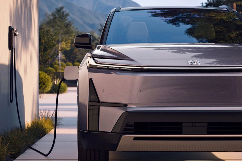 Về thiết kế, Toyota Highlander EV sở hữu diện mạo hiện đại với những đường nét sắc sảo và thiên về tính khí động học. Phần đầu xe nổi bật với dải đèn LED ban ngày liền mạch và cụm đèn LED hình chữ C đặc trưng của Toyota, kết hợp cùng các khe hút gió hình thang ở cản trước.