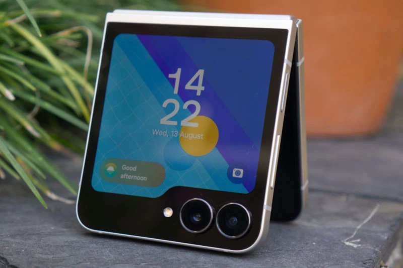 Về nhiếp ảnh, Samsung Galaxy Z Flip7 FE 5G tiếp tục sở hữu cụm camera sau gồm cảm biến chính 50MP và camera góc siêu rộng 12MP. Cả hai đều hỗ trợ OIS và PDAF giúp ảnh sắc nét, ổn định trong nhiều bối cảnh. Camera selfie 10MP được đặt tinh gọn trong màn hình chính. Thiết kế gập đặc trưng đem đến trải nghiệm FlexCam độc đáo, cho phép chụp ảnh rảnh tay, selfie nhóm, quay vlog linh hoạt. Flip7 còn có tính năng Auto Zoom tự động điều chỉnh khung hình và Zoom Rocker giúp quay video mượt mà ngay cả khi đang gập máy.