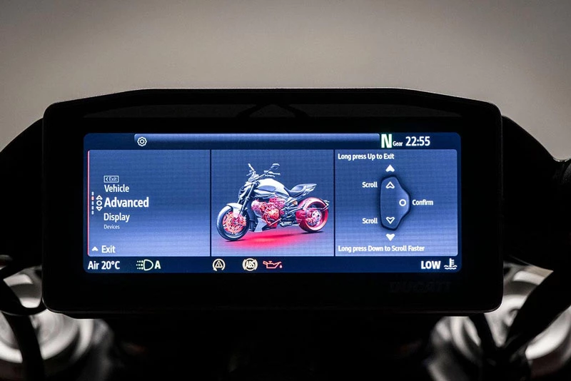 Về công nghệ, Ducati XDiavel V4 được trang bị màn hình TFT màu kích thước 6,9 inch, hỗ trợ hiển thị sắc nét và trực quan. Các tính năng điện tử hiện đại bao gồm kiểm soát hành trình, hỗ trợ khởi động, sang số nhanh Ducati Quick Shift, hệ thống chống bó cứng phanh ABS, kết nối Bluetooth và tùy chọn dẫn đường từng chặng. Tất cả giúp Ducati XDiavel V4 không chỉ mạnh mẽ về hiệu năng mà còn tiện nghi và thân thiện với người lái trong quá trình sử dụng hàng ngày lẫn các hành trình dài.