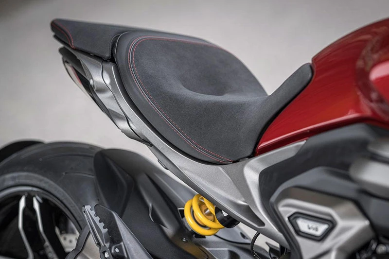 Ngoài ra, động cơ còn có khả năng tự ngắt hai xi-lanh phía sau khi xe dừng hoặc chạy ở vòng tua thấp nhằm tối ưu mức tiêu hao nhiên liệu và giảm nhiệt. Đáng chú ý, Ducati đã chuyển sang sử dụng hệ truyền động cuối bằng xích trên XDiavel V4, thay cho dây đai như các thế hệ trước.