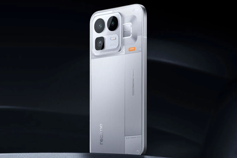 Realme Neo8 sở hữu ngôn ngữ tạo hình RGB trong suốt độc đáo với ba tùy chọn màu sắc gồm tím cyber, trắng origin và xám mecha. Mặt lưng được xử lý bằng quy trình phân vùng 3D trong suốt, khắc 11 họa tiết với độ sâu khác nhau, tạo hiệu ứng khúc xạ ánh sáng và bóng đổ ấn tượng. Điểm nhấn quen thuộc “Make it real” tiếp tục xuất hiện, trong khi vòng sáng Awakening Halo quay trở lại, hỗ trợ hiệu ứng ánh sáng thể thao điện tử, thông báo và đồng bộ âm nhạc.