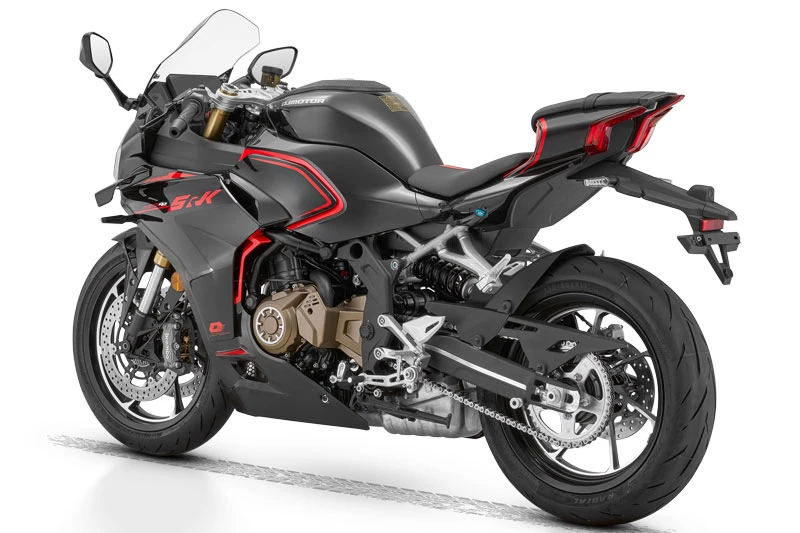 Sức mạnh của QJMotor SRK450RR 2026 được truyền tới bánh sau thông qua hộp số 6 cấp kết hợp với hệ thống truyền động bằng xích, đáp ứng tốt cả nhu cầu di chuyển hằng ngày lẫn trải nghiệm tốc độ trên đường trường.