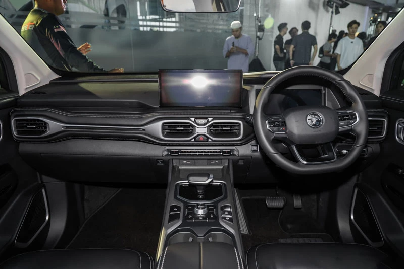 Bên trong cabin, nội thất Proton X90 MC 2026 giữ nguyên bố cục quen thuộc nhưng có một số cải tiến nhỏ về trang bị. Từ phiên bản cơ bản Lite, ghế ngồi đã được bọc da nhân tạo thay cho ghế vải trước đây. Ngoài ra, mẫu SUV này cuối cùng cũng được trang bị Apple CarPlay và Android Auto không dây trên tất cả các phiên bản. Xe vẫn sử dụng màn hình cảm ứng trung tâm 12,3 inch, bảng đồng hồ analog vẫn được giữ lại trên bản Lite. Hai phiên bản cao hơn là Prime và Prime X được trang bị bảng đồng hồ kỹ thuật số 10,3 inch.
