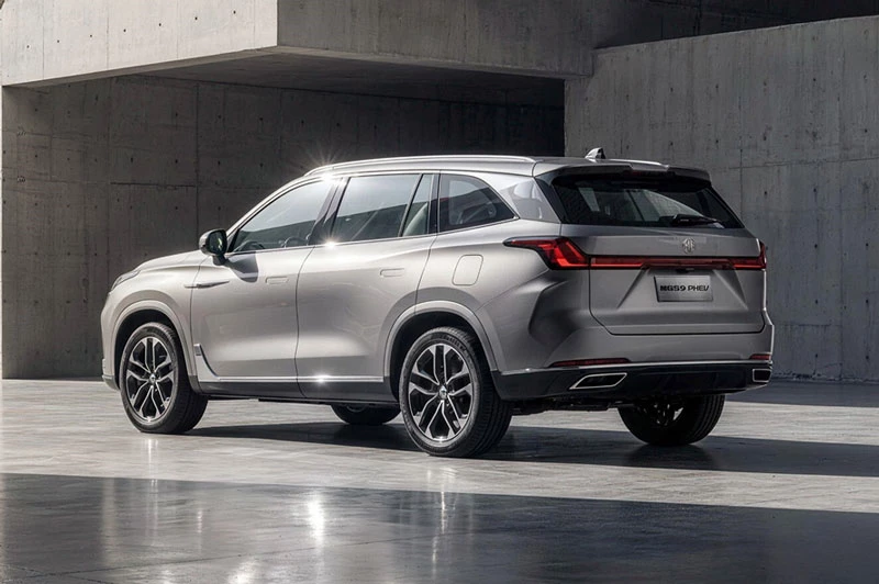 Nhìn từ bên hông, MG S9 gây ấn tượng với các đường gân dọc thân xe sắc nét, tay nắm cửa ẩn hiện đại và bộ mâm hợp kim thiết kế năm chấu kép mang phong cách thể thao. Phía sau xe sử dụng cụm đèn hậu LED nối liền toàn chiều rộng thân xe, kết hợp với cánh gió trên nóc và hệ thống ống xả kép hai bên, mang lại diện mạo năng động và đậm chất SUV hiện đại.