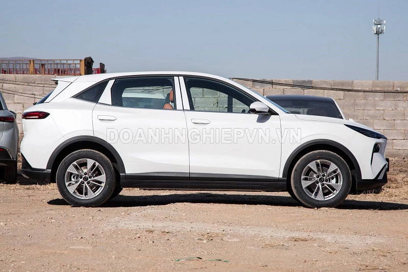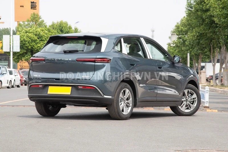 Cổng sạc điện được bố trí tại chắn bùn phía trước, thuận tiện cho việc sạc pin. Về kích thước, xe có dài x rộng x cao lần lượt là 4.450x1.860x1.635 mm, chiều dài cơ sở 2.750 mm, mang lại không gian nội thất khá rộng rãi trong phân khúc SUV điện cỡ nhỏ. Xe cung cấp tùy chọn mâm 17 inch và 18 inch để phù hợp với nhu cầu người dùng.