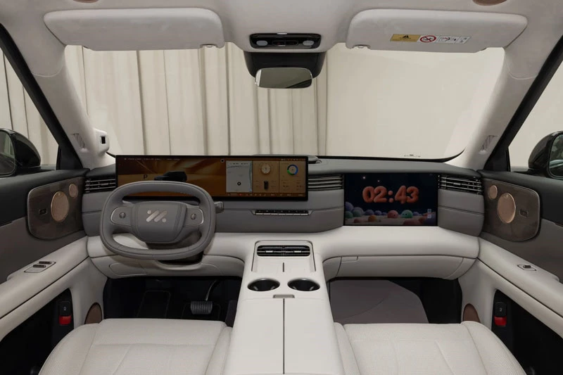 Không gian nội thất của IM LS8 mang phong cách sang trọng và công nghệ cao với ba tông màu chủ đạo gồm nâu xám, be xám và đen xám. Cabin được hoàn thiện bằng nhiều vật liệu mềm, phối màu hai tông tinh tế kết hợp hệ thống đèn viền nội thất. Xe tiếp tục sử dụng màn hình buồng lái 5K kích thước 27,1 inch cùng màn hình giải trí riêng cho hành khách 15,6 inch độ phân giải 3K, vận hành trên nền tảng hệ điều hành thông minh IM AIOS. Điểm nổi bật là hệ thống trí tuệ nhân tạo IM Ultra Agent với khả năng xử lý ngôn ngữ tự nhiên vượt trội, cho phép tương tác nhanh chóng, phản hồi gần như tức thì và học thói quen người dùng mà không cần lặp lại lệnh nhiều lần.