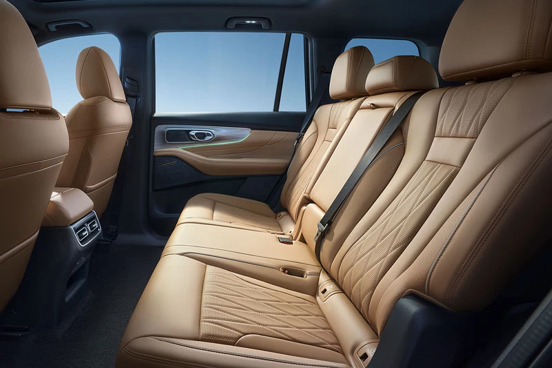 Trumpchi GS8 Navigator Edition có kích thước lần lượt là 4.980x1.950x1.780 mm, cùng chiều dài cơ sở 2.920 mm, thuộc nhóm dẫn đầu trong phân khúc SUV cùng tầm giá. Nhờ đó, không gian thực tế bên trong xe rất rộng rãi, cả hàng ghế trước lẫn hàng ghế sau đều mang lại sự thoải mái cho người ngồi. Cửa sổ trời góp phần tăng cảm giác thoáng đãng cho khoang cabin. Đáng chú ý, dung tích khoang hành lý của GS8 được xếp hạng cao, đứng thứ 2 trong nhóm xe cùng phân khúc và mức giá với cách bố trí khoa học, đáp ứng tốt nhu cầu sử dụng hằng ngày cũng như những chuyến đi dài.