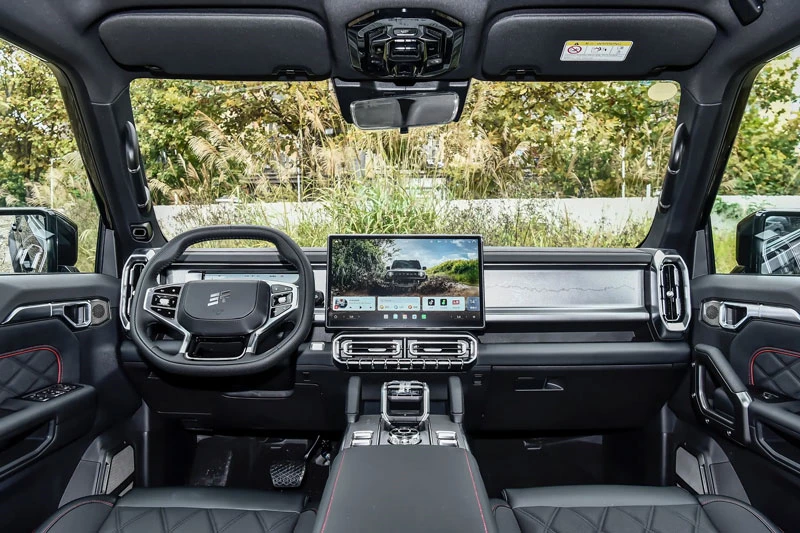 Các trang bị tiêu chuẩn nổi bật gồm màn hình báo áp suất lốp, kiểm soát hành trình, chế độ lái đa dạng, cửa sau đóng êm, keyless entry, khởi động từ xa, hàng ghế sau gập 50:50, hệ thống âm thanh 8 loa, kính cách nhiệt nhiều lớp và điều hòa tự động. Trên bản C-DM, người dùng có thêm giá nóc, camera hành trình tích hợp, trạm phát điện VTOL 6,6 kW phục vụ dã ngoại, ghế phụ chỉnh điện 4 hướng và cả tính năng karaoke giải trí.