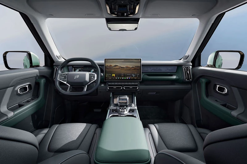 Kích thước tổng thể của Jetour Shanhai T1 AWD lần lượt là 4.706 x 1.967 x 1.840 mm, chiều dài cơ sở 2.810 mm (ngắn hơn 5 mm so với bản FWD). Khoảng sáng gầm 185 mm, góc tiếp cận 28°, góc thoát 29°, khả năng lội nước 600 mm và sức kéo tối đa 1.600 kg, giúp xe đáp ứng tốt cho nhu cầu di chuyển địa hình phức tạp. Xe còn được trang bị cửa sổ trời toàn cảnh rộng 64 inch, mang lại không gian mở và sang trọng cho khoang cabin.