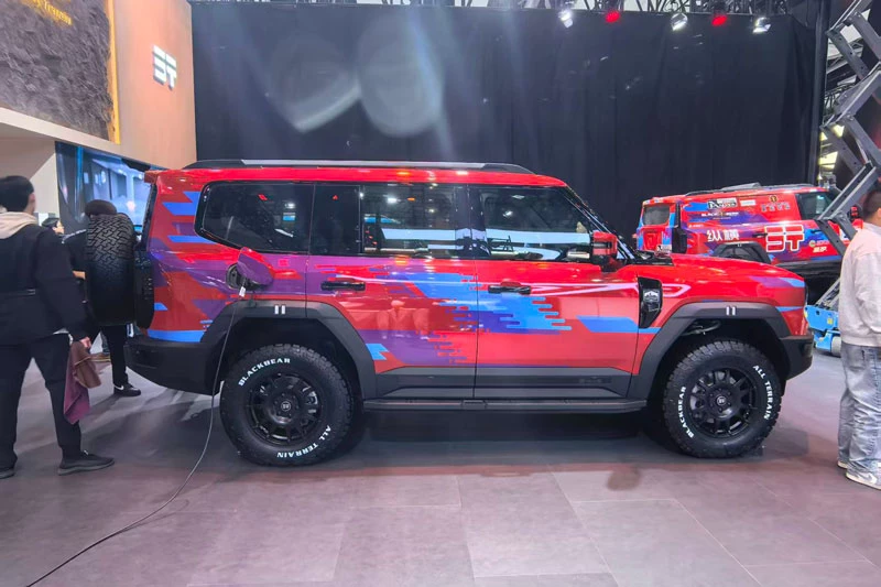 Tấm trượt này có khả năng chịu va đập tối đa 210 MPa, tăng khả năng chống ăn mòn lên 500% mà không cần sơn phủ - trang bị lý tưởng cho môi trường khắc nghiệt của các đường đua rally sa mạc. Ngoài ra, xe còn dùng bộ giảm xóc nitơ 64 cấp và lốp địa hình Black Bear 265/70 R18, vốn được tinh chỉnh từ những mẫu xe tham chiến thực tế tại các giải rally khốc liệt.
