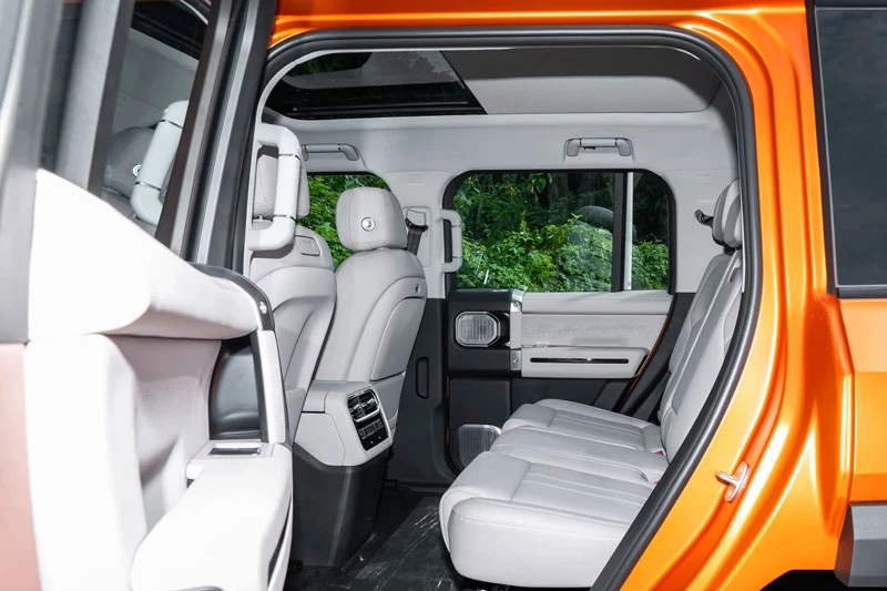 Ghế ngồi bọc da nhiều lớp có thông gió, sưởi, massage tám điểm và hỗ trợ duỗi chân, mang lại tiện nghi như SUV hạng sang. Hệ thống âm thanh Lescon chuẩn 7.1.4 kênh được trình diễn ngay tại triển lãm, tạo trải nghiệm giải trí sống động trong khoang cabin.