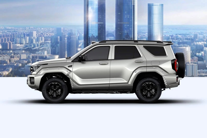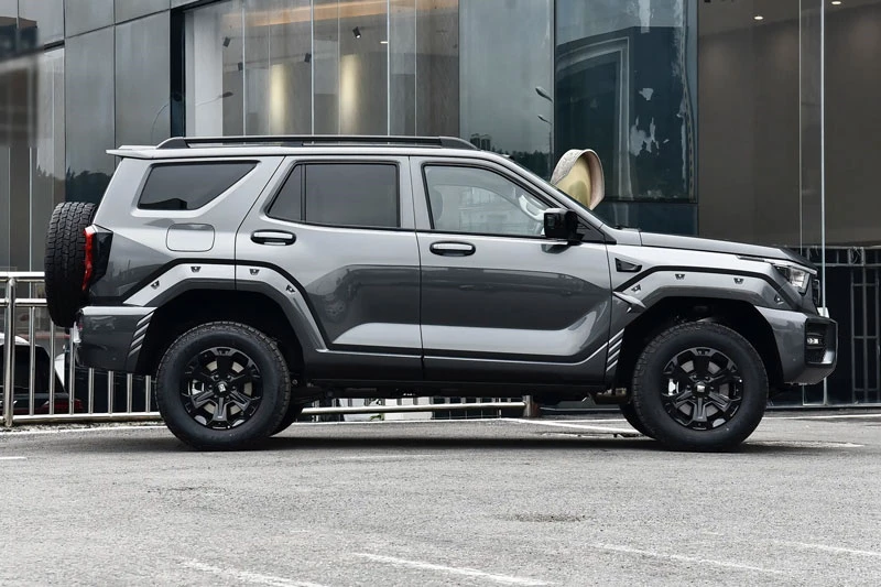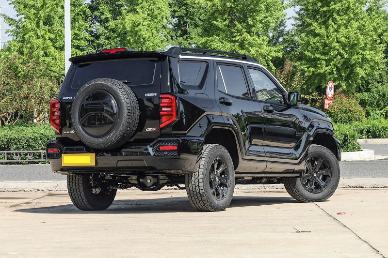 Thân xe tiếp tục giữ phong cách cơ bắp với viền đinh tán lộ trên vòm bánh và bậc bước chân khác biệt tùy phiên bản - điện cho bản Hi4-T Smart và cố định trên Hi4-Z Smart. Phần đuôi xe vẫn trung thành với bánh dự phòng gắn ngoài, đi kèm nắp thiết kế mới và logo Tank - Great Wall Motor tinh chỉnh lại, cùng ký hiệu hệ truyền động rõ ràng.