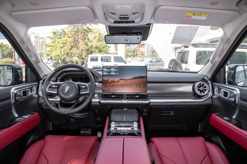 Khoang nội thất Tank 400 2026 được cải tiến mạnh mẽ về công nghệ. Màn hình trung tâm cảm ứng giảm từ 16,2 inch xuống còn 15,6 inch nhưng nâng độ phân giải lên 2,5K, tích hợp hệ điều hành Coffee OS thế hệ 3 cùng trợ lý giọng nói thông minh Coffee GPT. Phía trước người lái là cụm đồng hồ kỹ thuật số 12,3 inch kết hợp màn hình HUD hiển thị trên kính lái.