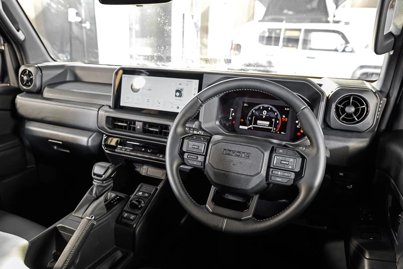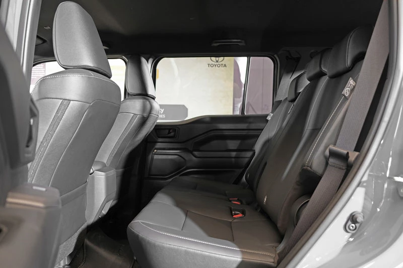 Bên trong cabin, Land Cruiser FJ theo đuổi phong cách đơn giản nhưng bền bỉ với tông màu đen chủ đạo. Nội thất được trang bị các tiện ích thiết yếu như vô-lăng bọc da chỉnh 4 hướng, ghế lái chỉnh điện, điều hòa tự động hai vùng và hệ thống lọc không khí PM2.5. Hàng ghế sau có thể trượt, ngả và gập linh hoạt, cho phép mở rộng khoang hành lý lên hơn 1.500 lít khi cần thiết, đáp ứng tốt nhu cầu chở đồ cho các chuyến đi dài.
