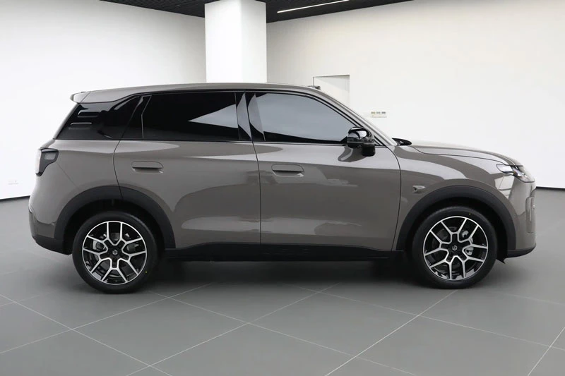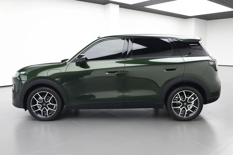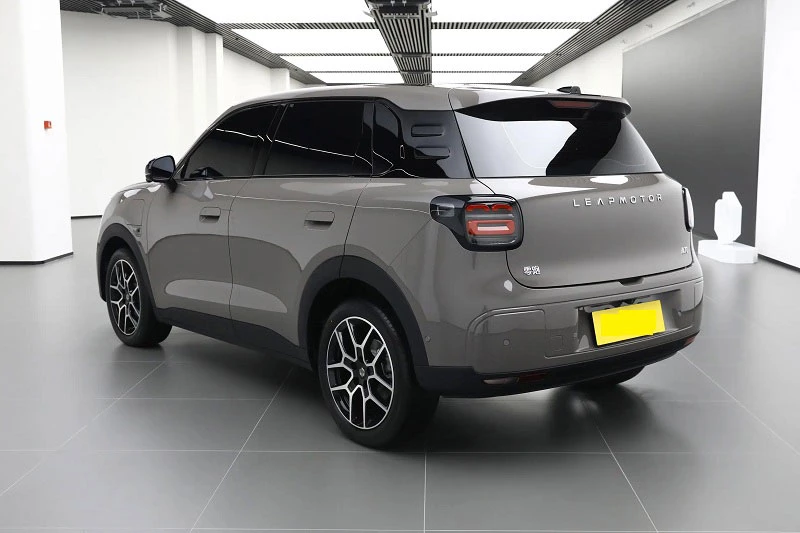 Nắp ca-pô dài 1.133 mm đem lại tỷ lệ ngoại hình cân đối và hiện đại. Xe bố trí cổng sạc ở vòm bánh trước bên trái, dùng trụ sơn đen để tạo hiệu ứng mui xe nổi, đi kèm cửa sổ trời toàn cảnh và bộ vành 18 inch. Leapmotor cũng trang bị cảm biến LiDAR cùng sáu đèn tín hiệu màu xanh cho biết hệ thống hỗ trợ lái đang hoạt động - một chi tiết hiếm thấy trong phân khúc giá rẻ. Khách hàng có thể lựa chọn sáu màu ngoại thất gồm xanh lá, nâu, bạc, xám, xanh dương và be.