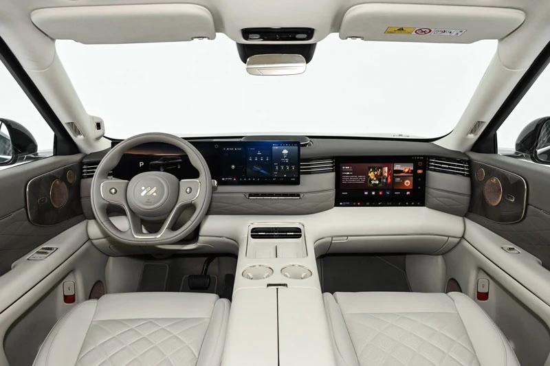 Khoang cabin của IM LS9 EREV mang phong cách tương tự mẫu IM LS6, với màn hình kép MiniLED 5K 27,1 inch cho người lái và màn hình phụ MiniLED 3K 15,6 inch cho hành khách phía trước. Các cửa gió điều hòa ẩn trong táp-lô tạo nên tổng thể gọn gàng, hiện đại. Xe còn có khu vực trung tâm tích hợp sạc không dây, ngăn chứa đồ tiện lợi, cùng vô lăng hai tùy chọn (nửa chấu hoặc toàn chấu), cả hai đều có nút xoay cảm ứng thông minh.