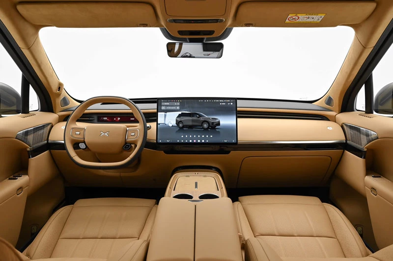 Không gian nội thất của Xpeng GX được thiết kế theo phong cách buồng lái ôm trọn, kết hợp nhiều chi tiết mạ crôm tạo cảm giác cao cấp. Trung tâm là màn hình điều khiển 17,3 inch độ phân giải 3K, đi kèm vô lăng hai chấu đa chức năng có thể điều chỉnh điện tới 135 mm. Xe còn được trang bị hệ thống đèn nội thất hiệu ứng bầu trời sao, cùng bảng điều khiển trung tâm dạng đảo nổi tích hợp sạc không dây và giá để cốc ẩn. Hệ thống âm thanh AI Max với 33 loa, cấu hình vòm 7.1.6.8, mang lại trải nghiệm giải trí cao cấp, trong đó có cả loa tích hợp trong tựa đầu.