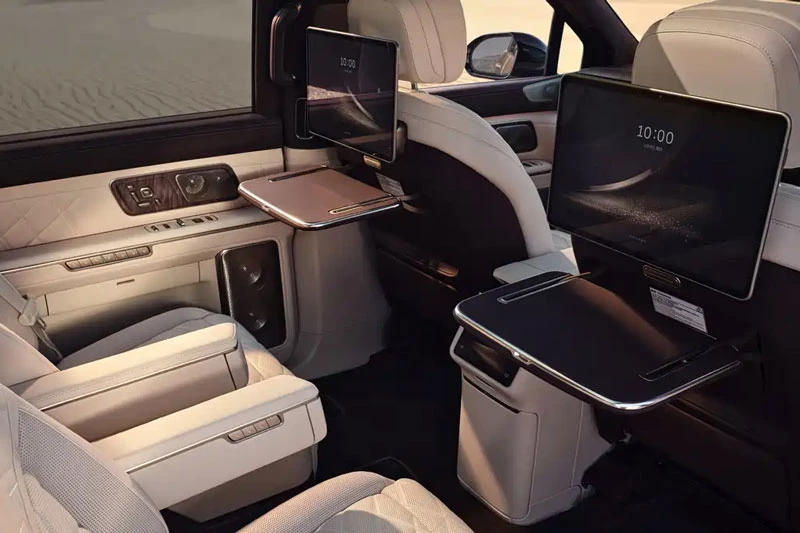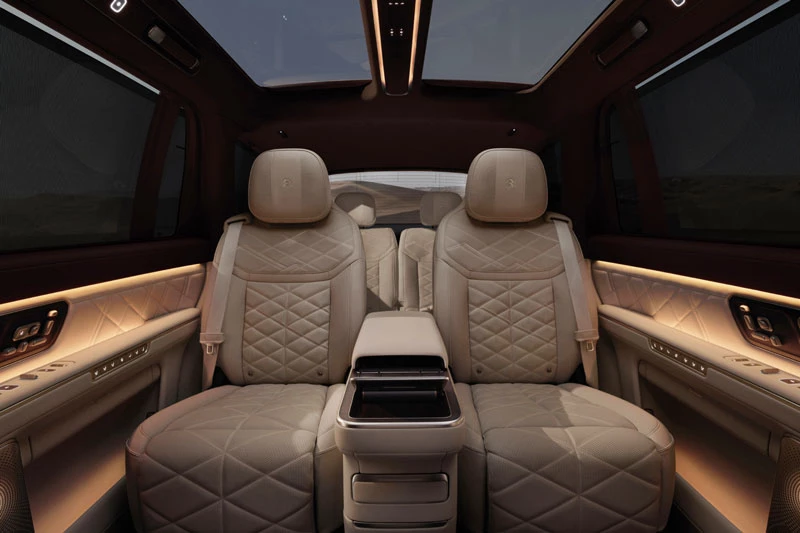Hàng ghế thứ hai có khả năng điều chỉnh tới 26 hướng, tích hợp massage 42 điểm, trong khi hàng ghế thứ ba vẫn được trang bị chỉnh điện và sưởi ấm. Hệ thống âm thanh cao cấp 47 loa công suất 3.020 W cùng hệ thống đèn nội thất 16 triệu màu tạo nên không gian giải trí đẳng cấp. Ngoài ra, xe còn sở hữu cửa kính thông minh chống nhìn trộm, màn hình giải trí phía sau và hàng loạt tiện ích như chế độ nghỉ ngơi, xem phim hay cắm trại.