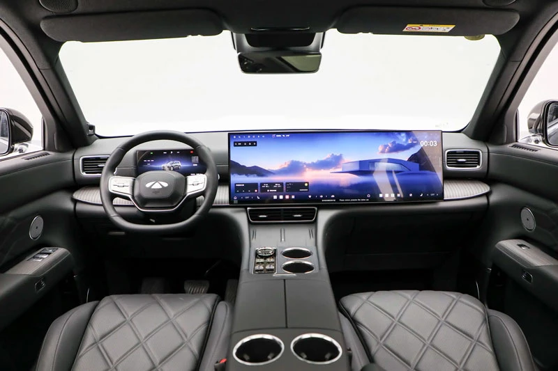 Khoang nội thất của Chery Fulwin T11 được thiết kế sang trọng, đậm chất công nghệ với màn hình siêu rộng 30 inch độ phân giải 6K, kết hợp bảng đồng hồ kỹ thuật số 10,25 inch và vô lăng hình chữ D hai chấu hiện đại. Ngoài ra, các phiên bản cao cấp còn được trang bị thêm màn hình giải trí 17,3 inch phía sau, tạo trải nghiệm giải trí đẳng cấp cho hành khách.