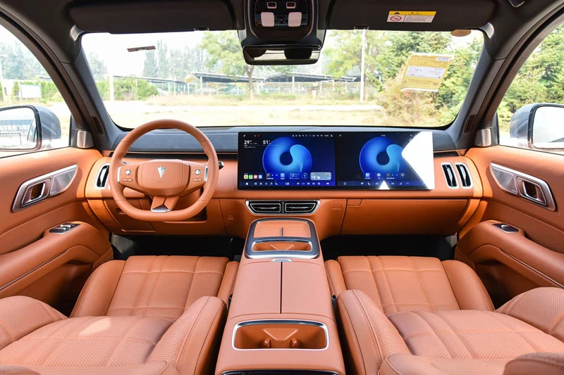 Kích thước tổng thể của Deepal S09 lần lượt là 5.205x1.996x1.800 mm và chiều dài cơ sở lên tới 3.105 mm, mang lại không gian nội thất rộng rãi tương đương các mẫu xe đầu bảng như Li Auto L9. Bên trong cabin, xe được trang bị hai màn hình trung tâm kích thước 15,6 inch độ phân giải 2.5K ở hàng ghế trước, kết hợp cùng màn hình hiển thị thông tin kính lái AR-HUD kích thước 43 inch, tạo nên trải nghiệm công nghệ cao đậm chất tương lai.