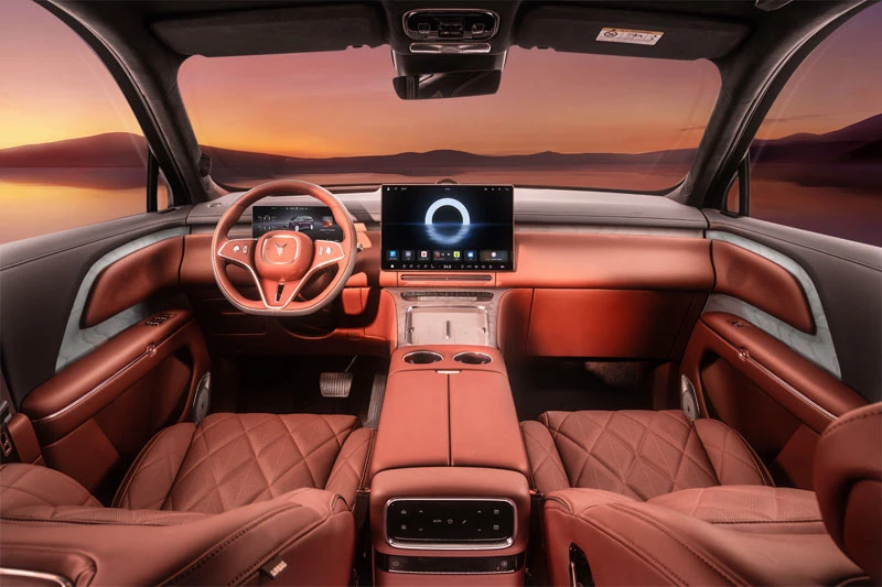 Khoang cabin Voyah Taishan được xây dựng theo triết lý “núi và biển”, đặt trọng tâm vào cảm xúc và trải nghiệm sang trọng. Ở hàng ghế trước là màn hình điều khiển trung tâm cỡ lớn tích hợp HarmonyOS cockpit, cho phép điều khiển bằng giọng nói tự nhiên và kết nối hệ sinh thái Huawei.