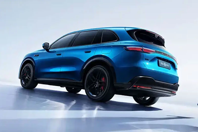 Nhìn từ bên hông, Aito M6 nổi bật với tay nắm cửa bán ẩn, mâm hợp kim 5 chấu kép sơn đen bóng và kẹp phanh màu đỏ, mang đến điểm nhấn thể thao cho tổng thể thân xe. Kiểu dáng tổng thể ưu tiên các bề mặt thiết kế tinh gọn, kết hợp những chi tiết mang tính chức năng, phù hợp với tỷ lệ và phong cách của một mẫu SUV cỡ trung hướng đến người dùng gia đình. Ở phía sau, xe dự kiến được trang bị cụm đèn hậu LED kéo dài toàn bộ chiều rộng, đi kèm cánh gió gắn trên nóc, trong khi khu vực cản sau sử dụng ốp nhựa màu đen nhằm tạo sự tách biệt rõ ràng giữa phần thân xe và gầm xe.