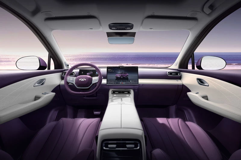 Danh sách trang bị tiện nghi trên xe cũng rất ấn tượng với màn hình giải trí gắn trần 17,3 inch dành cho hàng ghế sau, hệ thống đèn viền nội thất 256 màu theo nhịp điệu, cửa sổ trời toàn cảnh diện tích lên tới 2 m² đi kèm rèm che điện, cùng hệ thống âm thanh AI Boya 23 loa với cấu hình vòm 7.1.4 và công suất tối đa 1.080 W. Nội thất xe có 3 tùy chọn màu sắc gồm vàng cam ấm áp, xanh mực và tím cực quang.