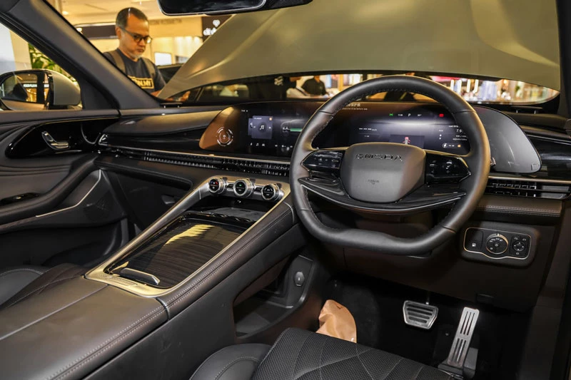 Ngoại thất của xe nổi bật với đèn pha LED thích ứng, dải đèn ban ngày dạng sigma, đèn hậu LED, gương chiếu hậu gập điện tích hợp sưởi, cửa hậu đóng mở điện và hệ thống chìa khóa NFC hiện đại. Nội thất được bọc da cao cấp, trang bị vô lăng đa chức năng chỉnh điện, ghế trước và sau đều có sưởi, thông gió và ghế lái chỉnh điện. Xe tích hợp màn hình kép 12,3 inch, HUD, hệ thống giải trí hỗ trợ Android Auto và dàn âm thanh 14 loa của Sony, mang lại trải nghiệm tiện nghi cao cấp.