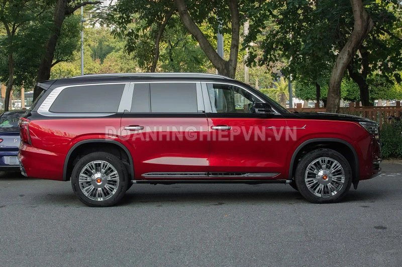 Cả hai phiên bản Hongqi Golden Sunflower National Glory SUV 2026 đều sở hữu kích thước đồ sộ 5.695x2.095x2.010 mm cùng chiều dài cơ sở 3.309 mm, đưa mẫu xe này vào nhóm SUV cỡ lớn. Trên thực tế, Hongqi Guoyao nên được xem là một mẫu SUV địa hình hạng sang full-size với vóc dáng tương đương các tên tuổi đình đám như Lincoln Navigator, Cadillac Escalade hay Chevrolet Suburban. Đáng chú ý, xe sử dụng khung gầm rời (body-on-frame) thay vì khung liền khối, một đặc trưng của các mẫu SUV địa hình thực thụ, nhấn mạnh khả năng vận hành đa địa hình chứ không chỉ đơn thuần phục vụ đô thị.