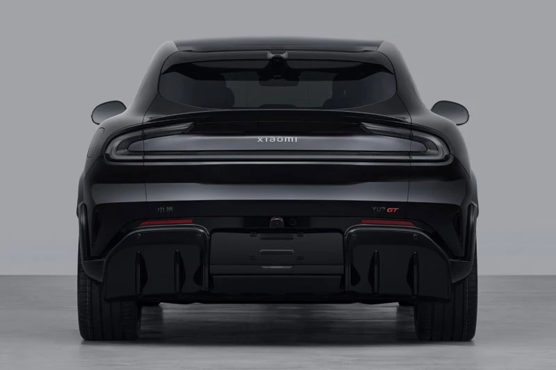 Thân xe gây ấn tượng với các vòm bánh lớn, bộ mâm đa chấu thể thao, kẹp phanh màu đỏ và tay nắm cửa ẩn, giúp tối ưu tính khí động học. Ở phía sau, cụm đèn hậu LED dạng thanh ngang tiếp tục tạo điểm nhấn nhận diện, đi kèm logo “XIAOMI” và “YU7 GT”, trong khi cản sau được thiết kế như bộ khuếch tán gió với các khe thoát khí kép, tăng tính thể thao cho tổng thể.