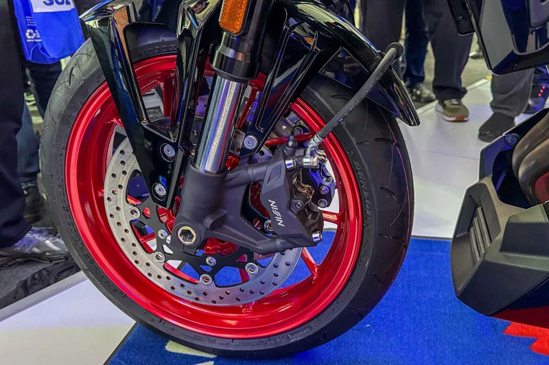Về cấu trúc, Suzuki GSX-8T và GSX-8TT 2026 sử dụng bộ mâm 17 inch đi kèm lốp 120/70 ở trước và 180/55 ở sau, mang lại khả năng bám đường ổn định. Hệ thống treo đến từ Kayaba (KYB) với phuộc trước dạng upside-down và giảm xóc đơn có thể điều chỉnh tải trước ở phía sau, giúp xe vận hành linh hoạt trên nhiều loại địa hình. Phanh trước là đĩa đôi 310 mm, phanh sau đĩa đơn 240 mm, mang lại khả năng hãm tốc mạnh mẽ và chính xác.