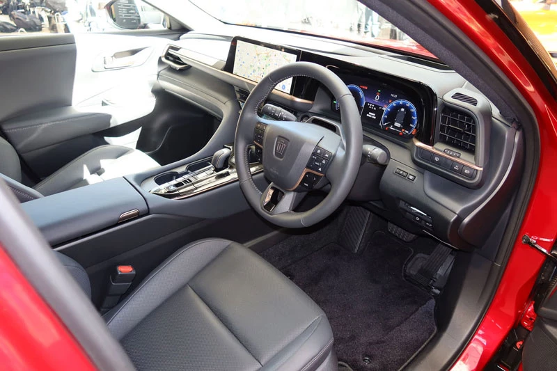 Về thiết kế, Toyota Crown Sport PHEV 2026 giữ nguyên phong cách thể thao sang trọng của bản HEV, nhưng được tinh chỉnh với bộ mâm hợp kim 21 inch sơn đen, phanh đĩa thông gió 20 inch, kẹp phanh đỏ 6 piston phía trước và phía sau, cùng mui xe sơn đen nổi bật. Nội thất mang phong cách thể thao mạnh mẽ với ghế da hai tông màu đỏ - đen, vô lăng ba chấu điểm xuyết viền đỏ, mang đến cảm giác năng động và cao cấp.