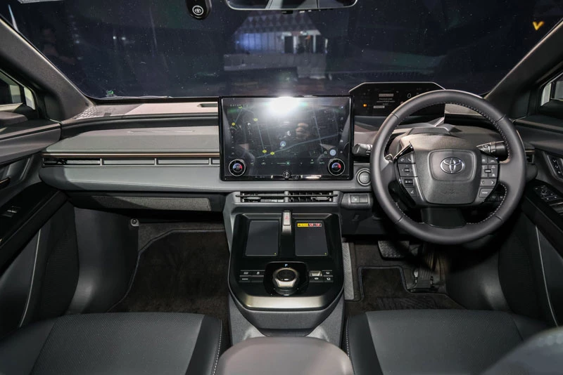 Danh sách trang bị tiêu chuẩn trên bZ4X khá đầy đủ, bao gồm ghế trước chỉnh điện 8 hướng có thông gió, điều hòa tự động hai vùng, cửa sổ trời toàn cảnh, hệ thống lọc không khí Panasonic nanoe X, gương chiếu hậu kỹ thuật số, Apple CarPlay và Android Auto không dây, camera 360 độ, camera hành trình trước sau và cốp điện rảnh tay.