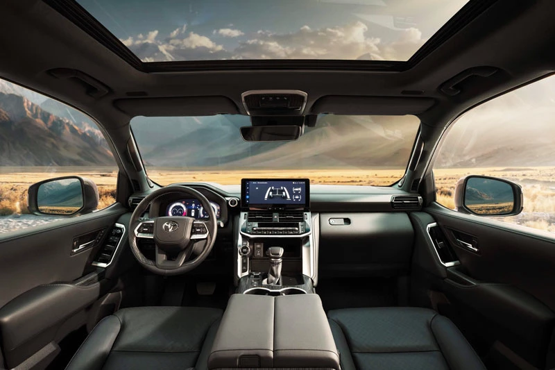 Ở cấu hình tiêu chuẩn VX, Toyota Land Cruiser 300 Hybrid vẫn giữ đậm chất sang trọng và thực dụng đặc trưng của dòng Land Cruiser. Xe được trang bị bộ mâm 18 inch, cửa hậu đóng mở điện, màn hình hiển thị thông tin kỹ thuật số 12,3 inch sau vô lăng và màn hình giải trí trung tâm 12,3 inch. Danh sách tiện nghi nổi bật còn có hệ thống âm thanh JBL 14 loa, vô-lăng sưởi ấm và ghế trước chỉnh điện, hướng đến nhóm khách hàng sử dụng xe thường xuyên trong các hành trình dài hoặc điều kiện khí hậu lạnh.