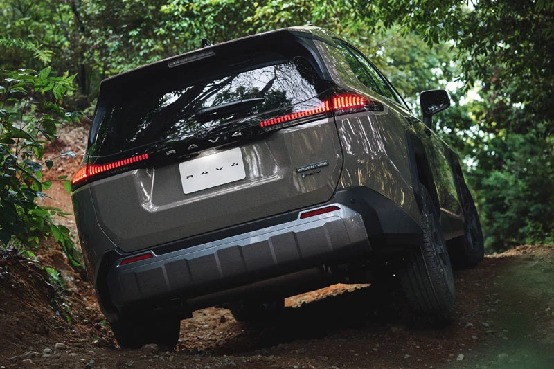 Trong khi đó, Toyota RAV4 Adventure 2026 hướng đến nhóm khách hàng ưa khám phá với diện mạo hầm hố hơn, lưới tản nhiệt hình chữ nhật cùng thanh ngang màu đen lớn, cản trước và sau cơ bắp, các khe thông gió dưới đèn pha và chi tiết trang trí màu đen mang logo Toyota. Những thay đổi này khiến bản Adventure có kích thước nhỉnh hơn, đạt chiều dài 4.620 mm và chiều rộng 1.880 mm, tạo cảm giác bề thế và đậm chất SUV off-road.