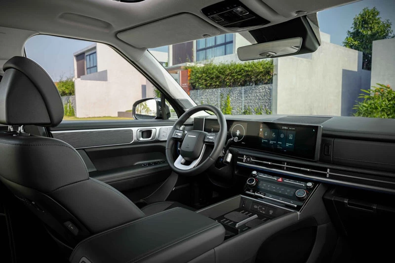 Ngoại hình của Santa Fe Hybrid gần như không khác biệt so với các bản xăng và dầu, ngoại trừ logo “Hybrid” đặt phía sau xe. Không gian nội thất vẫn giữ phong cách hiện đại với cụm hai màn hình liền khối kích thước 12,3 inch, cùng loạt trang bị an toàn chủ động ADAS quen thuộc của Hyundai.