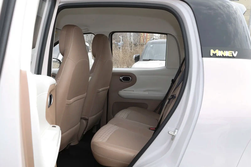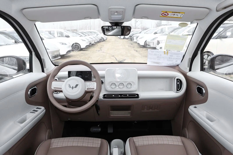 Không gian nội thất của Hongguang Mini EV 2026 được làm mới với phong cách hai tông màu nâu - trắng, kết hợp bảng táp-lô thiết kế lại nhằm tối ưu hóa các vị trí chứa đồ. Một thay đổi đáng chú ý là cần số được chuyển lên cột lái, giúp giải phóng không gian khu vực trung tâm và tăng tính tiện nghi. Xe được trang bị màn hình trung tâm 10,1 inch với giao diện mới, hỗ trợ menu điều khiển dạng thả xuống cùng bốn chế độ sử dụng gồm nghỉ ngơi, cắm trại, thời tiết mưa/tuyết và chế độ thú cưng.