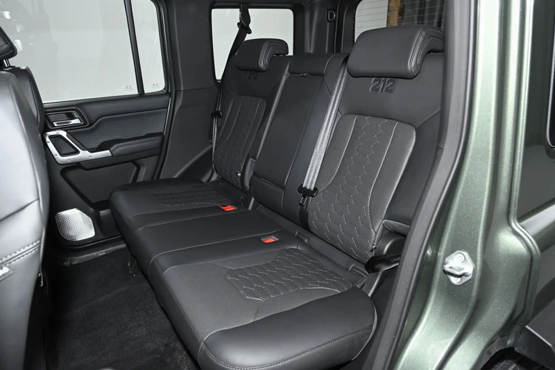 Với bình nhiên liệu 80 lít, xe có thể di chuyển gần 1.000 km cho mỗi lần đổ đầy - con số rất đáng chú ý với xe off-road. Cấu trúc thân xe không tải, treo trục cứng 5 liên kết trước sau kết hợp hệ dẫn động bốn bánh bán thời gian (2H/4H/4L) với khả năng khuếch đại mô-men xoắn 2,5 lần ở chế độ 4L giúp xe thể hiện khả năng chinh phục địa hình ấn tượng.
